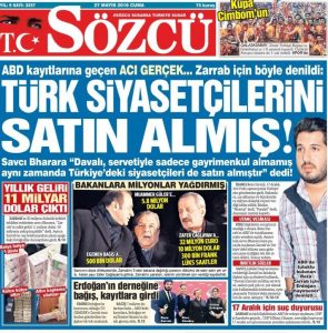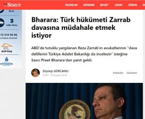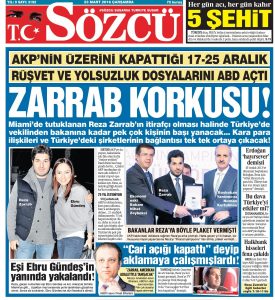 Sözcü, Zarrab’ın ABD ile anlaştığını önceden bilircesine 23 Mart 2016 tarihli manşetinde “Zarrab korkusu” başlığını kullandı, Zarrab’ın itirafçı olması hâlinde birçok bakan ve milletvekilinin başının yanacağını yazdı. Bharara’nın millî medyayı hedef alan sosyal medya mesajlarını haberleştirirken de ABD’den yana pozisyon aldı.