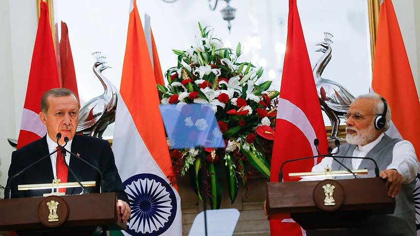 Cumhurbaşkanı Recep Tayyip Erdoğan ile Hindistan Başbakanı Narendra Modi, Hyderabad House’ta baş başa ve heyetler arası görüşmenin ardından mutabık kalınan konulardaki anlaşmaların imza törenine katıldı ve ortak basın toplantısı düzenledi.