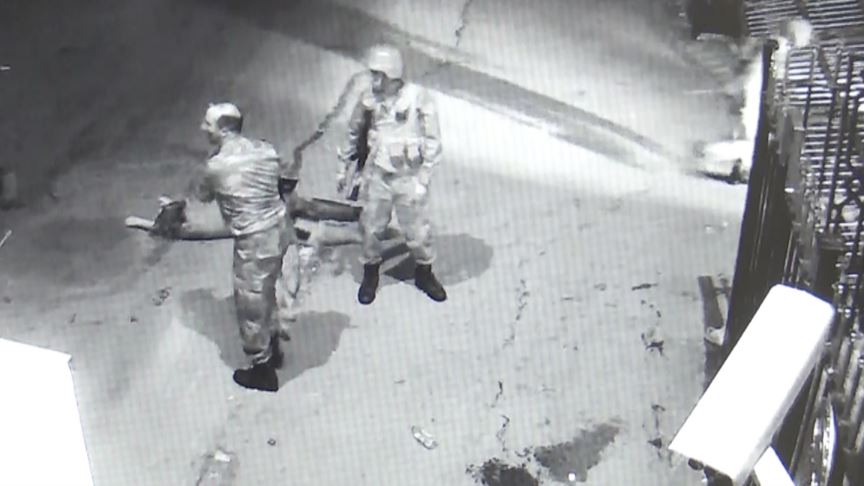 Yaralanan bir kişinin devrilen kapının üzerinden sürünerek geçtiği, bu sırada darbeci askerlerin müdahale etmeden onu izledikleri de görüntülere yansıyor.