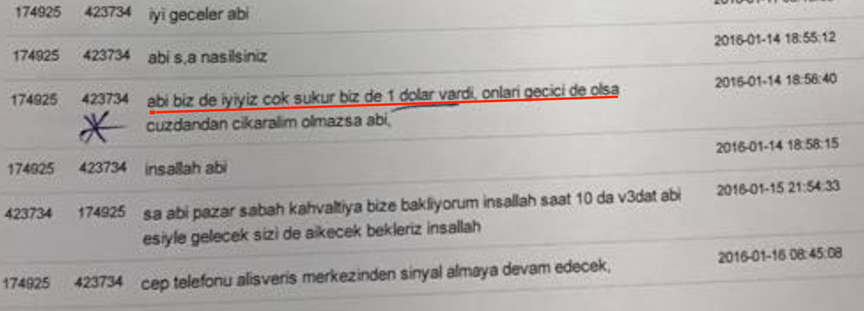 FETÖ’cü eski savcının örgüt imamına ByLock’ta “1 dolarları geçici de olsa cüzdandan çıkaralım olmazsa abi.” yazılı mesaj gönderdiği tespit edildi.