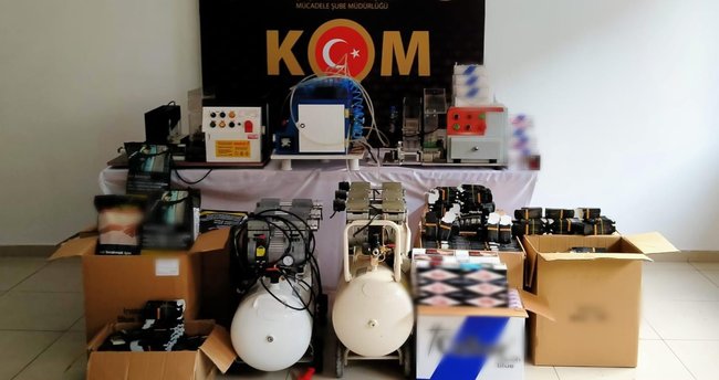 Harekete geçen ekipler, tespit edilen ikametlerde yaptığı aramalarda, sigara dolum makineleri, hava kompresörleri, 35 kilogram kıyılmış tütün, 920 makarona basılmış tütün, 24 bin boş makaron, 16 bin 450 boş sigara kutusu ile 550 TAPDK bandrolü ele geçirdi.