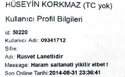 İstanbul Cumhuriyet Savcılığının belgelerine göre Korkmaz, “09341712” kullanıcı isimli ByLock kullanıcısı.