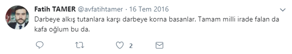 CHP Gençlik Kolları’na sızan FETÖ’cü Fatih Tamer’in darbe girişimini püskürten milli iradeyi küçümseyici paylaşımlar yapması dikkat çekti.