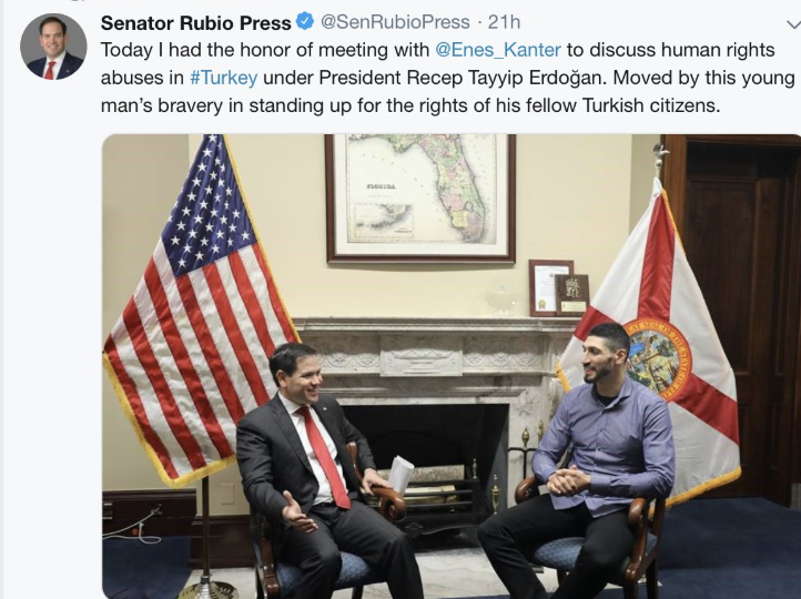 Bu nedenle, Senatör Rubio da, diğer birçok ABD’li senatör gibi Enes Kanter gibi FETÖ tetikçileriyle lobi yapıyor.