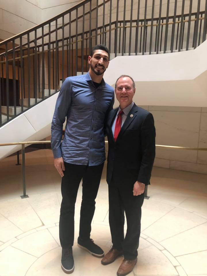 15 Temmuz 2016’da Türkiye’de demokrasiye darbe indirmeye çalışan FETÖ’nün manevi oğlu Enes Kanter, Türkiye’nin Afrin’de şiddet uyguladığını savunan senatör Schiff’le birlikte çektirdiği fotoğrafın altına “Sizinle buluşmak büyük bir onurdur. Demokrasi ve insan hakları konusundaki duruşunuzdan dolayı teşekkür ederim.” yazarak demokrasiden dem vuruyor.