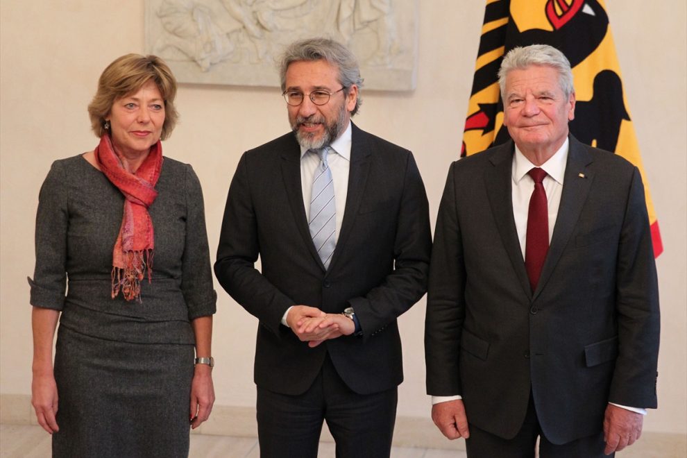 Almanya Cumhurbaşkanı Joachim Gauck, hakkında yakalama kararı olan Cumhuriyet gazetesi eski Genel Yayın Yönetmeni Can Dündar’ı kabul etti. Firari FETÖ’cü Can Dündar, Bellevue Sarayı’nda önce cumhurbaşkanlığı özel defterini imzaladı. FETÖ’nün kalemşörü Dündar’ı, Gauck ve hayat arkadaşı Daniela Schadt birlikte karşıladı. Türkiye’de hakkında yakalama kararı bulunan Can Dündar, burada ”Tutuklandık” adlı kitabının Almancasını Gauck’a hediye etti.