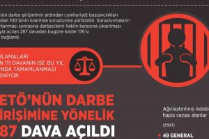 FETÖ’nün darbe girişimine ilişkin açılan 287 davadan 176’sı mahkeme heyetleri tarafından karara bağlandı, 111 davada ise darbecilerin yargılanması...