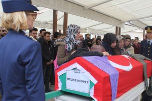 FETÖ mağduru Melike Kuvvet’in Türk bayrağına sarılı tabutunun üzerine giyemediği binbaşı tulumu konuldu, Hava Kuvvetleri subayları saygı nöbeti tuttu...