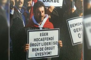 Uşak’ta 2014 yılında “Eğer hoca efendi örgüt lideri ise ben de örgüt üyesiyim!” yazılı pankart taşıyan FETÖ şüphelisi, “terör örgütü...