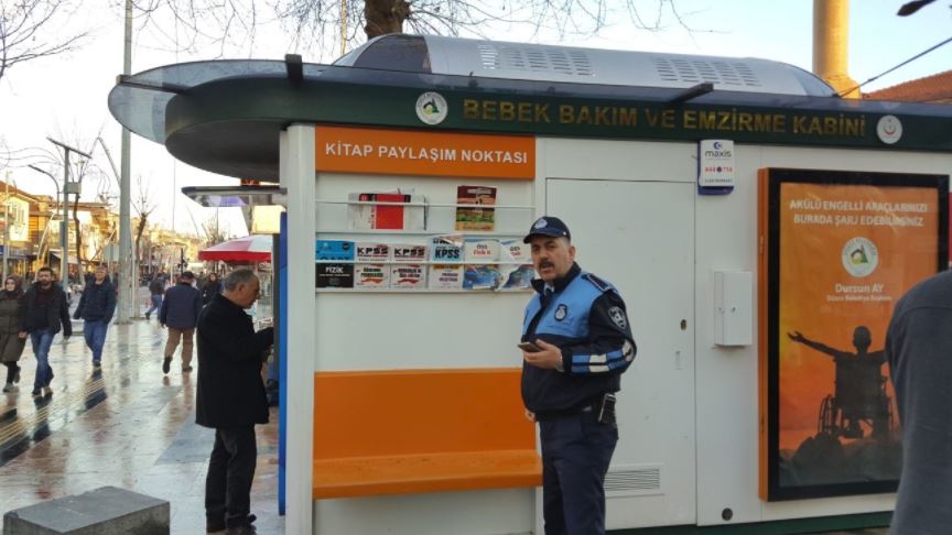 Düzce Merkez Büyük Camii bahçesinde bulunan Düzce Belediyesi’ne ait kitap paylaşım yerinin raflarına örgüte ait bazı dershane ve yayın evlerinin test kitaplarının konulduğunu gören vatandaşlar, polise ihbarda bulundu.