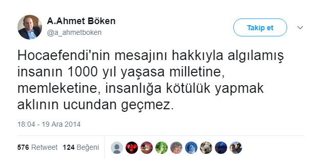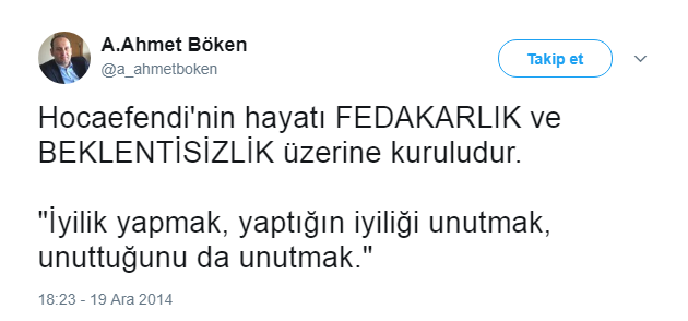 20 Aralık 2013’te görevden alınan Ahmet Böken’in, sosyal medya hesabından örgüt lehine paylaşımlarda bulunduğu da göze çarptı.