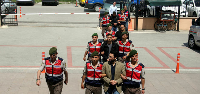 Edirne Jandarma Komutanlığındaki işlemlerinin ardından PKK’lı M.K. ve FETÖ şüphelileri B.A., E.D. ve M.D. elleri kelepçeli olarak Edirne Adliyesine sevk edildi.