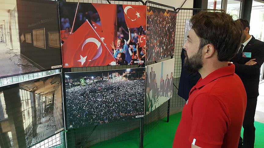 Fransa’nın Saint-Etienne kentinde FETÖ’nün darbe girişiminde çekilen fotoğraflardan oluşan “15 Temmuz Millî İradenin Yükselişi” adlı fotoğraf...