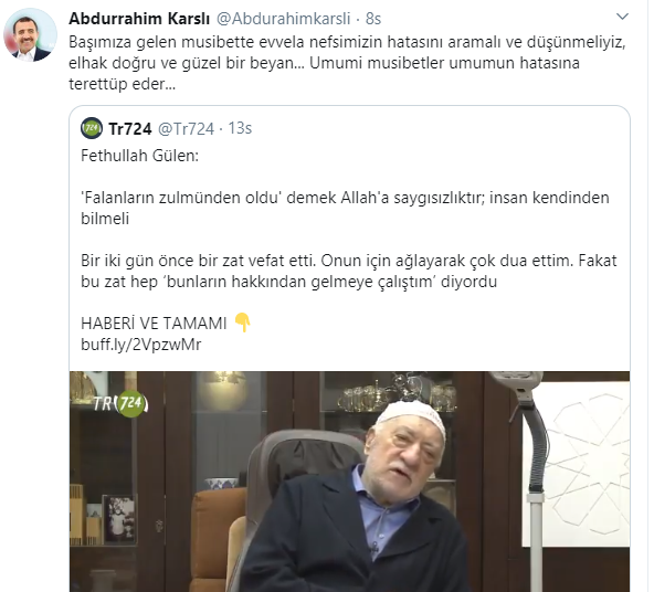 Merkez Partisi Genel Başkanı Abdurrahim Karslı, daha önce defalarca savunduğu FETÖ’nün bu kez elebaşının mesajını paylaştı. Abdurrahim Karslı FETÖ elebaşının...