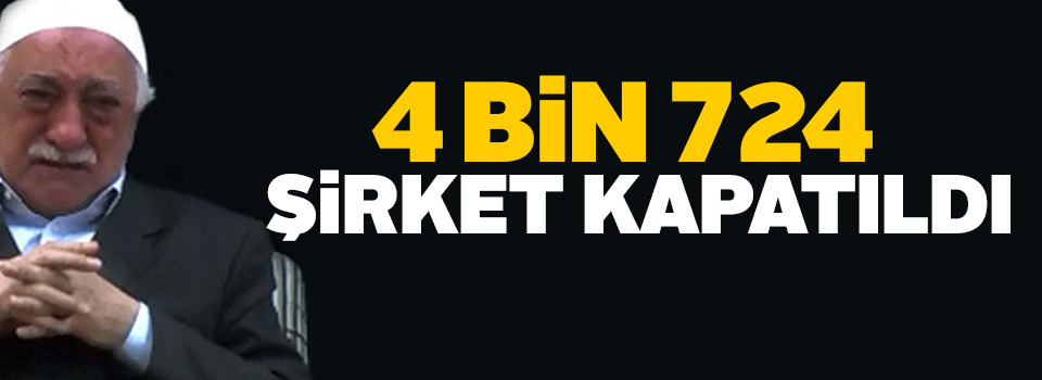 4 BİN 724 ŞİRKET KAPATILDI: FETÖ ile alakalı 34 özel sağlık kurum ve kuruluşu, 1411 özel öğretim kurumu, 995 özel öğrenci yurt ve pansiyonu, 1326 dernek iktisadi işletmesi, 15 vakıf üniversitesi, 31 sendika, federasyon ve konfederasyon, 733 dershane, 70 özel radyo ve televizyon, 109 gazete, dergi, haber ajansı olmak üzere toplam 4 bin 724 kurum ve kuruluş kapatıldı.