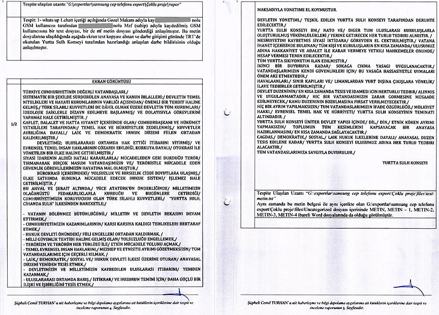 Söz konusu metnin defalarca değiştirildiği ve “Metin”, “Metin-1”, “Metin-2”, “Metin-3” ve “Metin-4” şeklinde 5 ayrı dosya olarak kaydedildiği belirlendi.