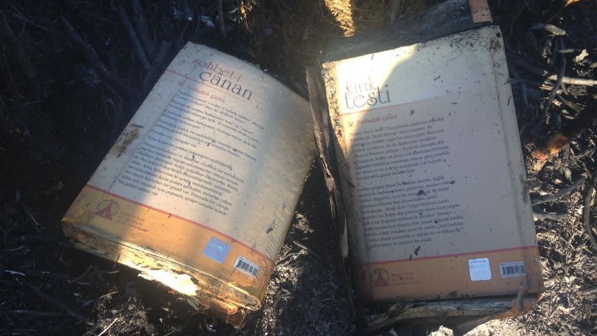 Yangın sonrası sazlık alanda itfaiye ekiplerinin yaptığı incelemede FETÖ elebaşı Gülen’e ait bir kısmı yanmış kitaplar bulundu. Gülen’e ait kitapları yakmak isteyen kişi ya da kişilerin yangına neden olduğu iddia ediliyor.