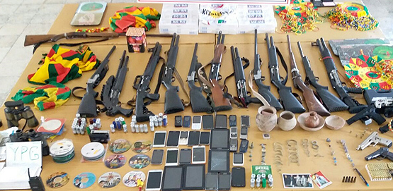 “Yapılan operasyon neticesinde icra edilen aramalarda 10 av tüfeği, 2 tabanca, 3 kurusıkı tabanca, tabanca şarjörü, kurusıkı tabanca şarjörü, 17 av tüfeği fişeği, 5 piyade tüfeği fişeği, 5 tabanca fişeği, kurusıkı tabanca fişeği, 3 dürbün, telsiz, 7 terörist fotoğrafı, 19 cep telefonu, 3 tablet bilgisayar, 7 hafıza kartı, 13 sim kart, 2 fotoğraf makinesi, 2 kamera, 3 flaşbellek, FETÖ terör örgütünün propagandasına yönelik kitap, PKK terör örgütünün propagandasına yönelik kitap, 250 paket kaçak sigara, örgütsel doküman ve terör örgütünün propagandasına yönelik hazırlanmış muhtelif materyal ele geçirilmiştir. Bölgemizde halkın huzur ve güvenliğini sağlamaya yönelik olarak terörle mücadele faaliyetlerine aralıksız devam edilmektedir.”