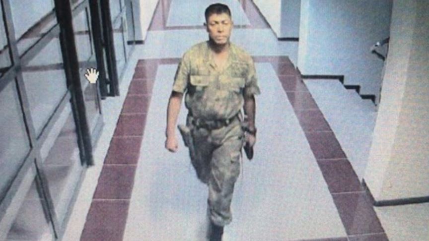 Görüntülere göre şehit Halisdemir, Özel Kuvvetler Komutanlığında telefon görüşmesi yaptıktan sonra dışarıya çıkıyor.