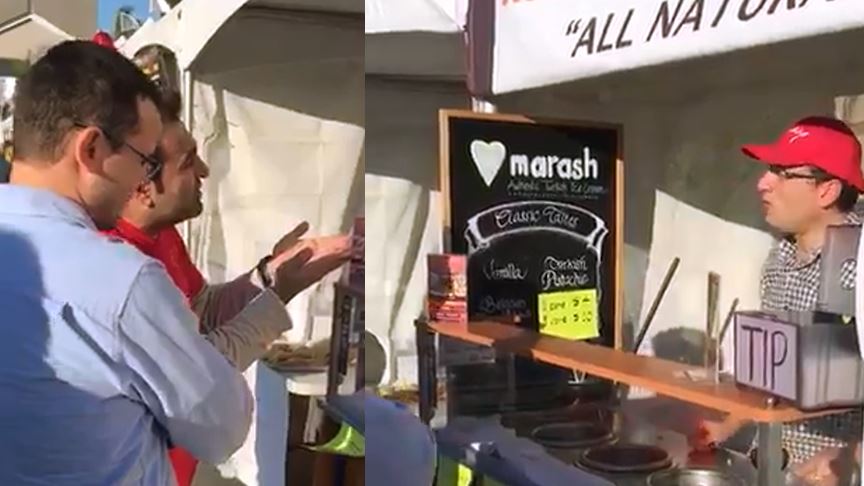 Görüntülerde, ABD’de dondurma satarak para kazanmaya çalıştığı anlaşılan FETÖ’cüye Türk vatandaşları tepki gösteriyor. Dondurma satışını yapan “Marash Ice Cream” isimli firma kayıtlara göre Erol Kozcuoğlu isimli iş adamına ait.