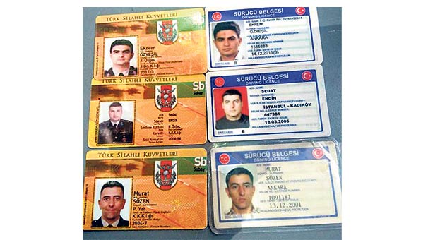 Yastığın içinden Yüzbaşı Murat Sözen, Üsteğmen Ekrem Özyeşil ve Üsteğmen Sedat Engin adına düzenlenen subay kartları ve ehliyetler çıktı.